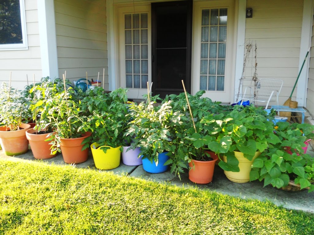 I think about that title every morning when I go out and water my container garden on the back patio. Here's how it looked on June 11: